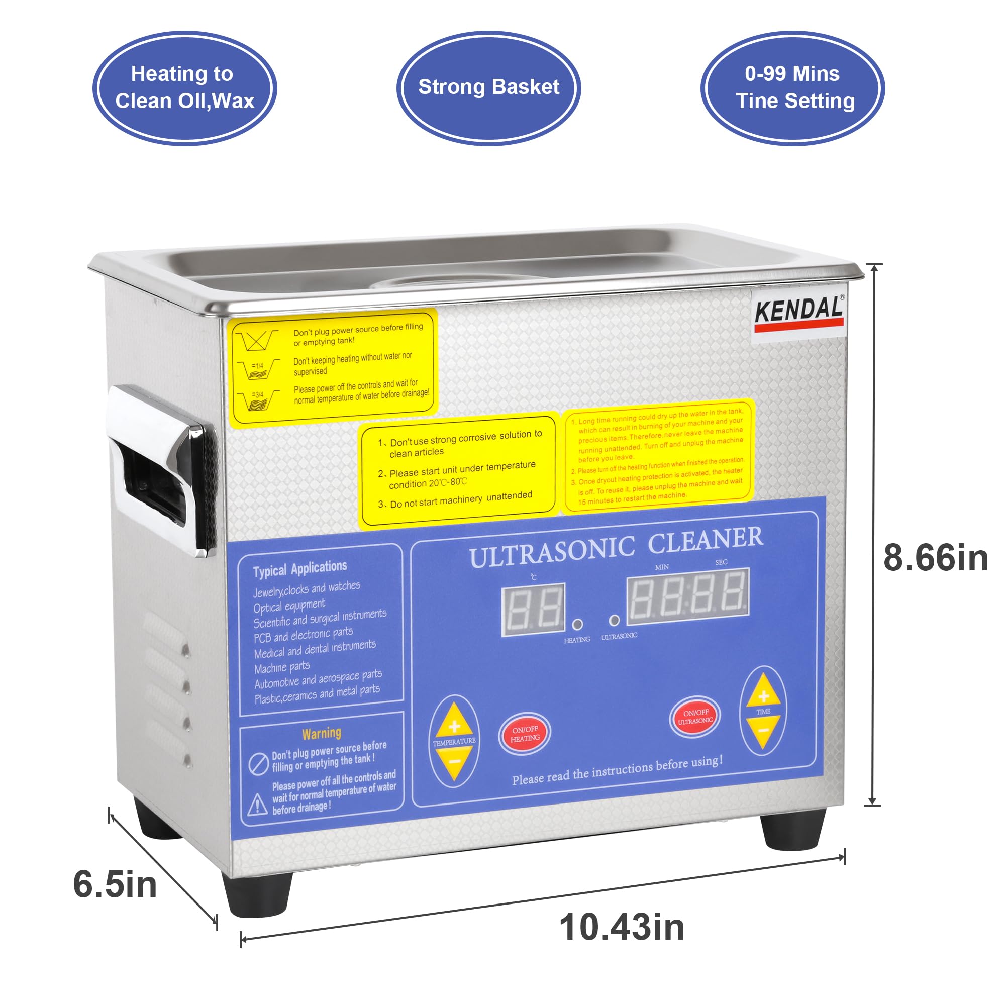 Kendal Commercial Grade 120watts 3L Ultrasonic Cleaner 40kHz with Digital Timer&Heater Cleaning Machine, for Watch Instruments Industrial Parts Excellent Cleaner Solution—