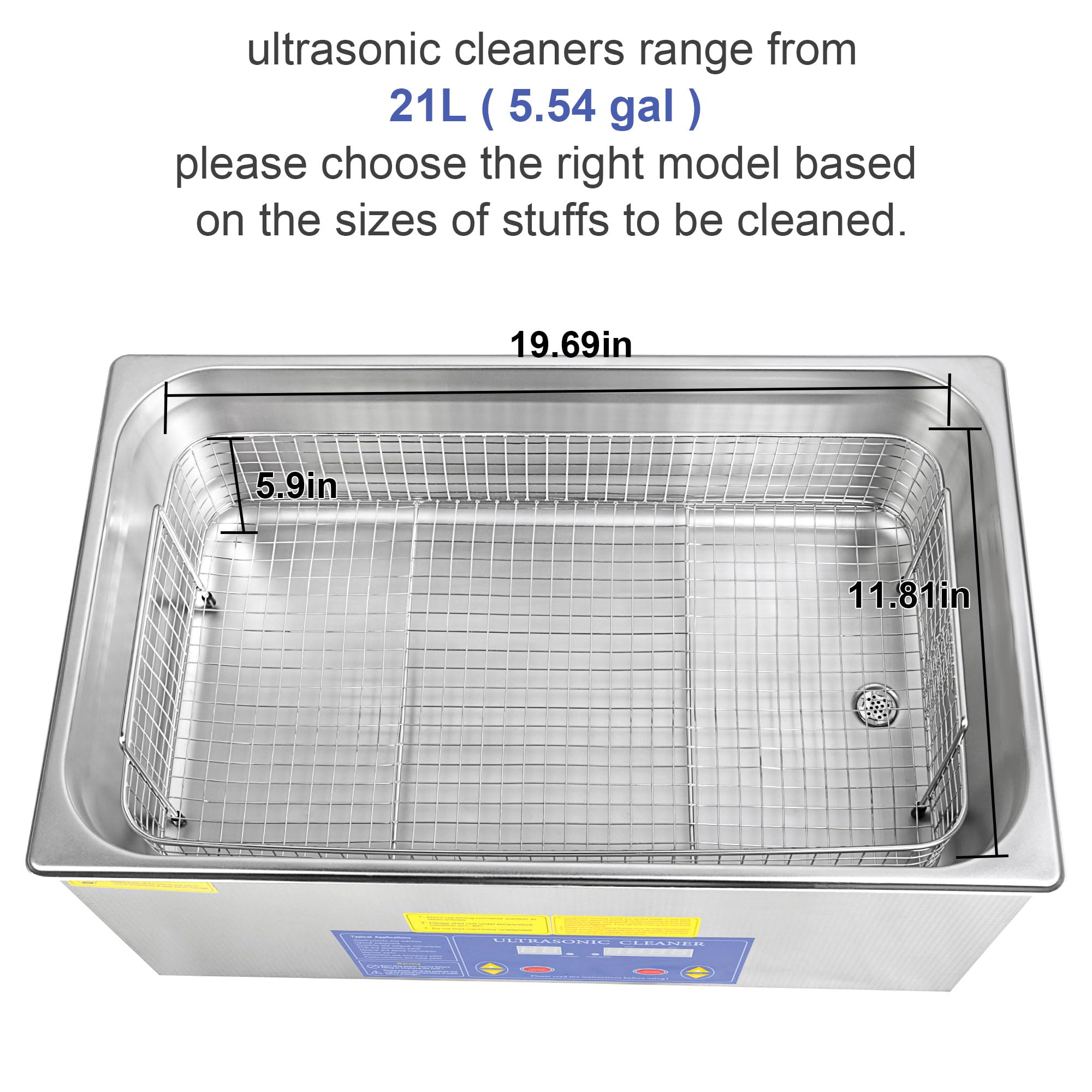 Kendal Commercial Grade 480watts 21L Ultrasonic Cleaner 40kHz with Digital Timer&Heater Cleaning Machine, for Watch Instruments Industrial Parts Excellent Cleaner Solution