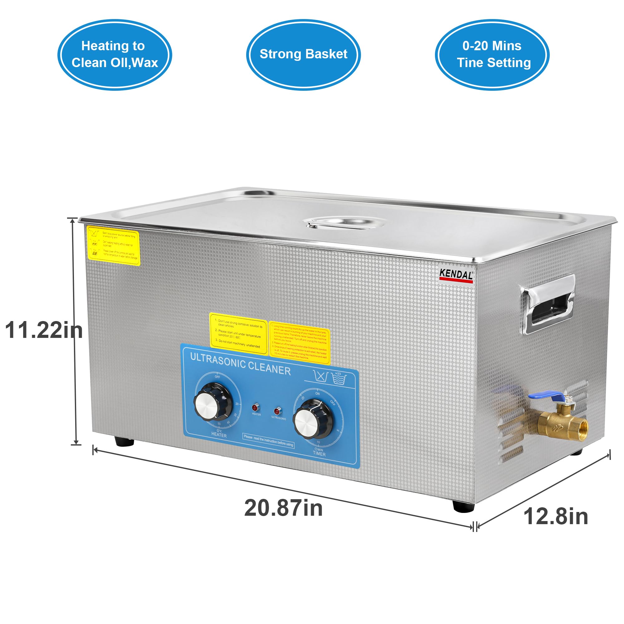 Kendal Commercial Grade 480watts 21L Ultrasonic Cleaner 40kHz with Knobs Timer&Heater Cleaning Machine, for Watch Instruments Industrial Parts Excellent Cleaner Solution