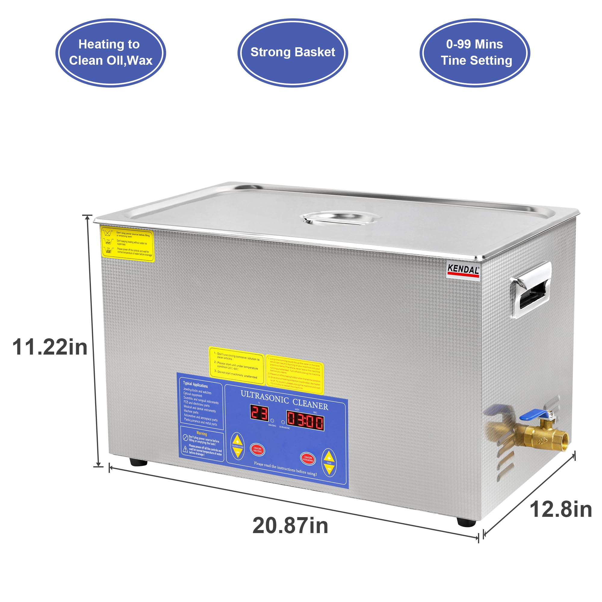 Kendal Commercial Grade 600watts 27L Ultrasonic Cleaner 40kHz with Digital Timer&Heater Cleaning Machine, for Watch Instruments Industrial Parts Excellent Cleaner Solution